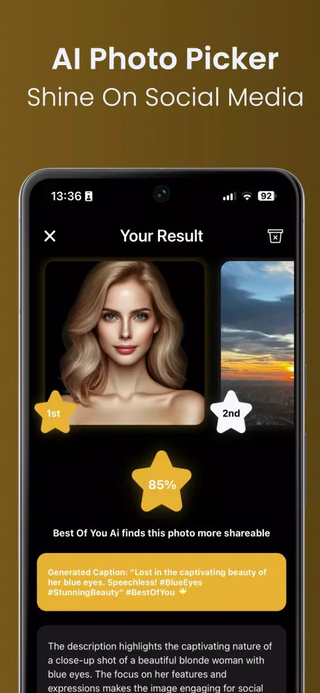 Are you unsure about which photo to post? Our AI-powered photo selection tool recommends the best images for your social media profiles, ensuring you always present your best self on platforms like Instagram, Tinder, and TikTok.