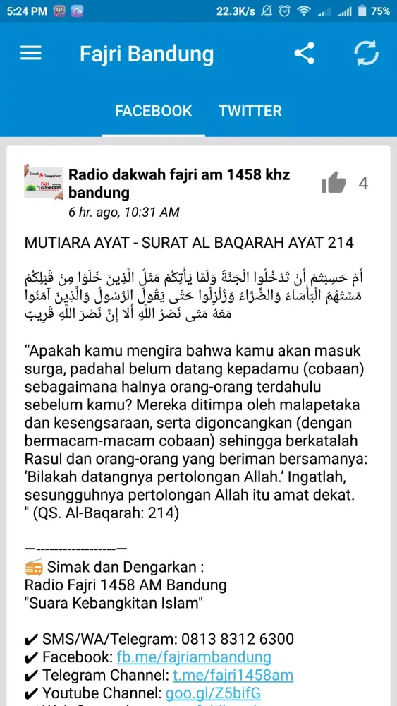 - Interactive Messaging: Engage with the community by sending messages to diverse contact channels associated with Fajri 1458 AM Bandung.