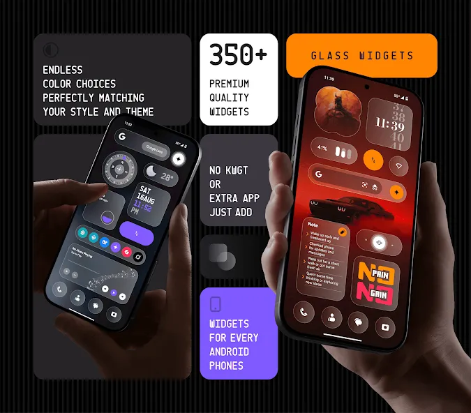 ✦ 350+ Glass-Style Widgets – Beautifully crafted with a sleek transparent glass finish.