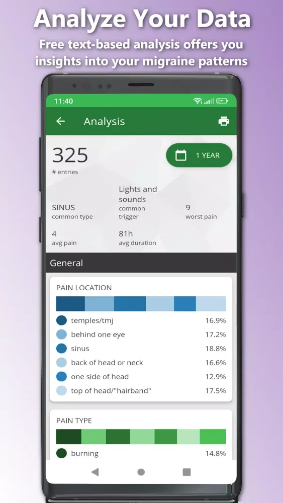 - Symptom Analysis: Get free basic analysis to track and identify patterns in your headaches, helping you gain insights into what might be causing them.