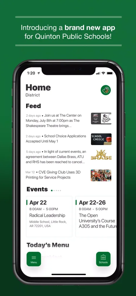 Welcome to the Quinton Public Schools mobile application! Designed specifically for parents, students, and community members, this app serves as your all-in-one tool for staying connected with everything happening at Quinton Public Schools. Whether it's staying informed about upcoming events, receiving personalized notifications, or accessing essential resources like cafeteria menus and staff directories, this app has been crafted to enhance communication and streamline your experience.