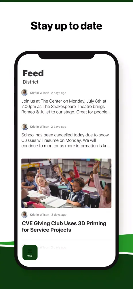 Stay up-to-date with the latest news and announcements from the administration through the Feed section. Here, you will find timely updates on what's happening in the district right now, keeping you informed and connected with the school community.