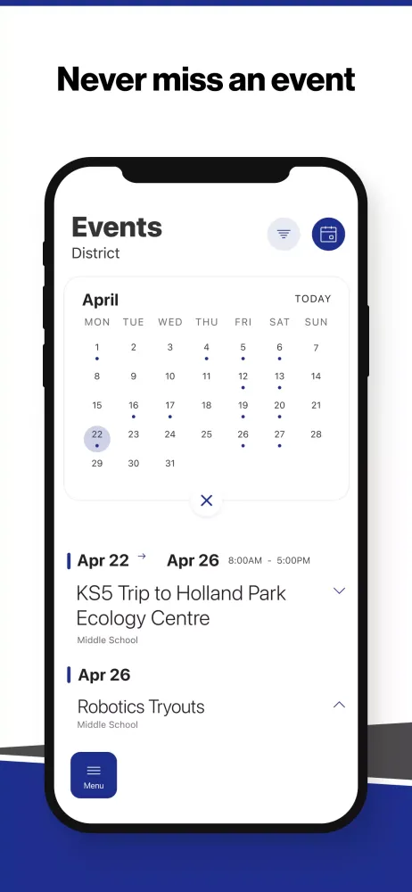 With the app's user-friendly event section, you can effortlessly stay up-to-date with all the happenings across the district. From parent-teacher meetings to sports games and cultural festivals, every event is at your fingertips. You have the convenience to add any event directly to your personal calendar or share it instantly with loved ones through social media or messaging platforms.