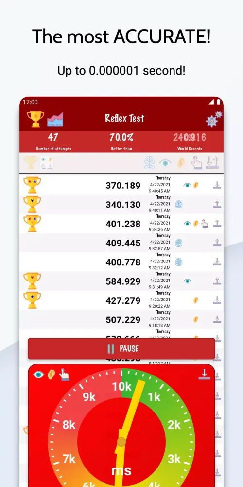 Improve your quickness and reflexes by testing your response times to color changes and sounds. As an exciting bonus, you can also put your psychic powers to the test with the telepathy challenge. It's a fun and quirky addition that adds a twist to the classic reflex test.