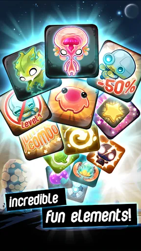 ✔ Evolving-aliens puzzle gameplay: hybrid of match-3 and sliding tile puzzles… it’s a whole new type of puzzling fun