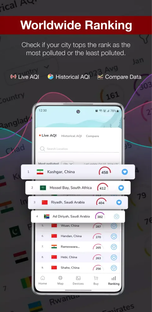 Stay updated on real-time air pollution rankings. Check the most polluted cities and countries in the world, and see how your location compares.