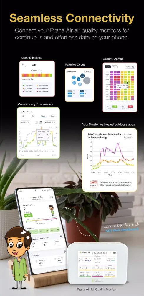 Seamlessly connect with Prana Air monitors through WIFI/GSM SIM connectivity. Access and download air quality data remotely anytime you need it. (Learn more: Prana Air)