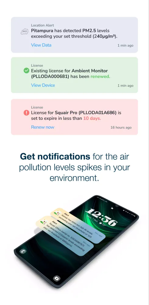 Set personalized threshold alerts for specific pollutants to ensure you're notified when air quality reaches your chosen levels.