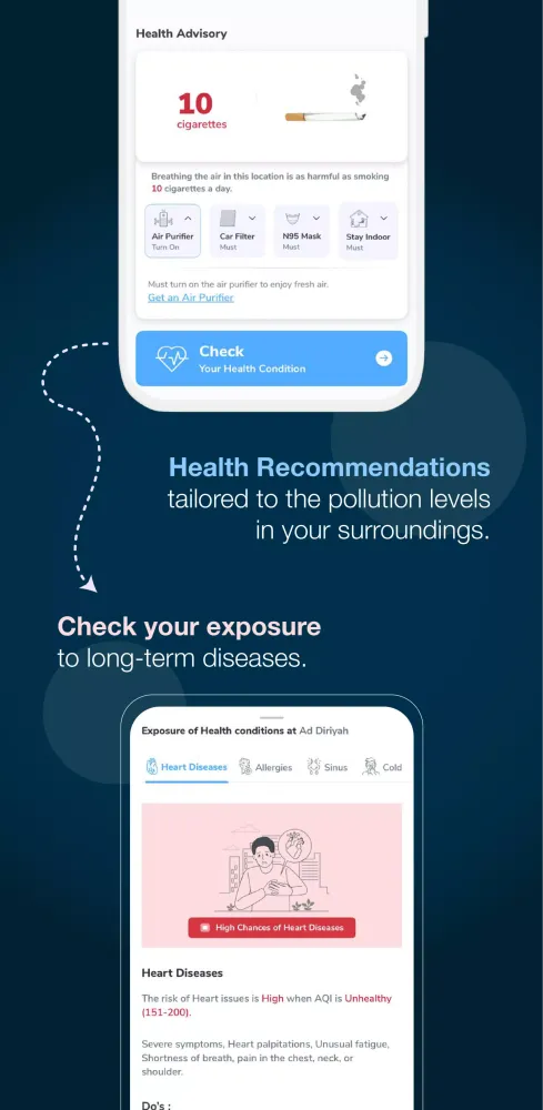 Receive real-time, location-based health tips. Get advice on the best time for outdoor activities or when to open windows to avoid dust and smoke entering your home.