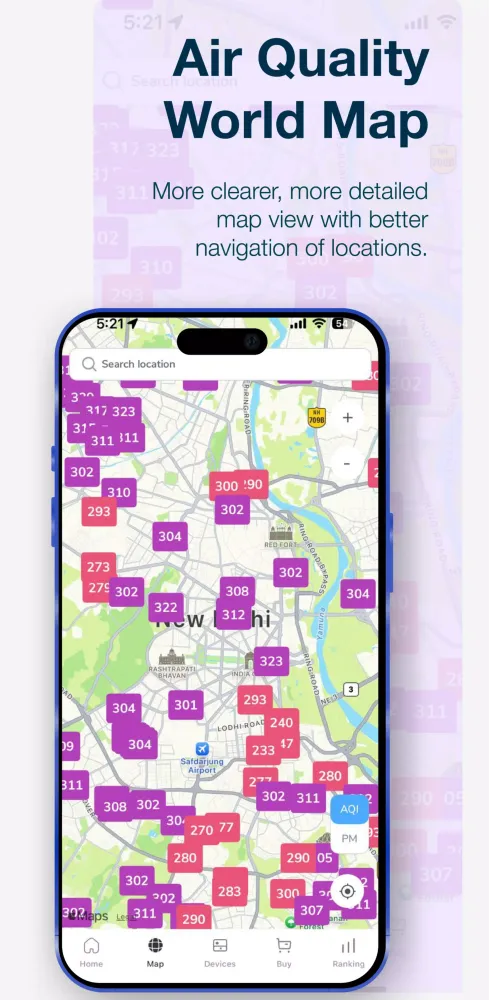 Automatically view AQI air quality data from the nearest monitor each time you open the app.