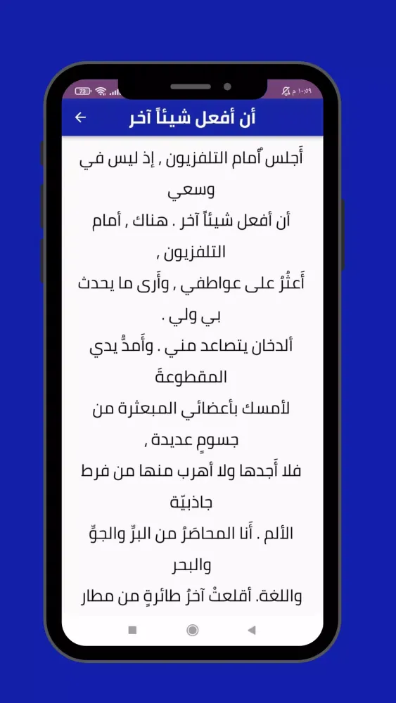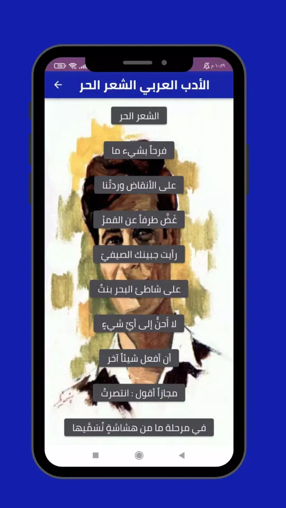 The app includes a rich assortment of poems by celebrated poets such as Mahmoud Darwish, Ghassan Kanafani, and Fadwa Toukan, along with contributions from numerous other poets across the Arab world. This collection showcases the beauty and depth of free verse, which has become one of the most popular forms of both international and Arabic poetry.