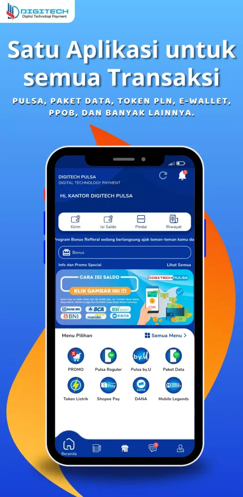 From mobile credits to PPOB (Payment, Billing, and Collection) services, Digitech Pulse provides a wide range of options to suit your needs. You can easily manage your finances, pay bills, and transfer money without leaving the comfort of your home or office. Our commitment to convenience and affordability makes us the ideal choice for anyone looking to simplify their financial transactions.