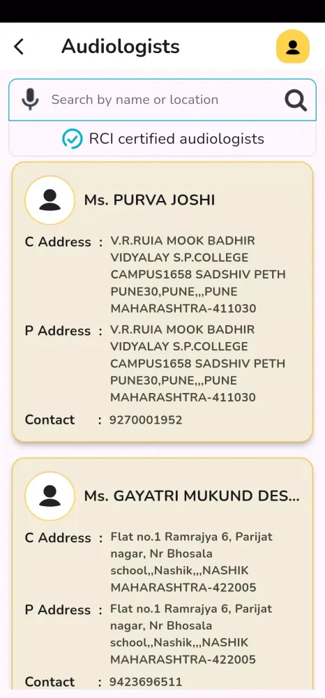 Beyond testing, Able Assistant empowers users to locate certified audiologists nearby. By simply entering your location, the app connects you with RCI (Rehabilitation Council of India)-certified professionals who specialize in hearing care. This feature ensures that you can access reliable, high-quality services tailored to your specific needs. Whether you’re looking for routine consultations or advanced treatments, finding the right audiologist has never been simpler.
