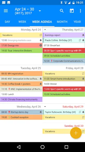 Colourful, easy-to-read day, week, week agenda, month, year and agenda views.
