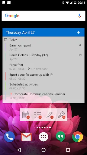 Make use of Calendar (agenda and month views), Tasks, Notes and quick add new EPIM items widgets. Place shortcuts for EPIM modules on the home screen for quicker access.