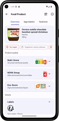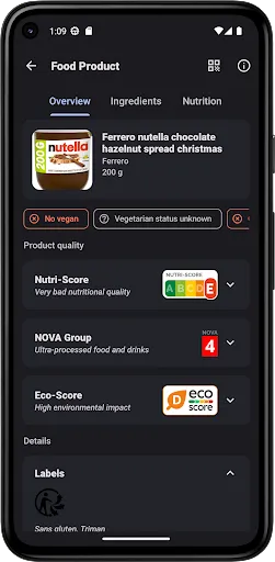• Scan Food products barcodes to receive information about their composition thanks to the databases Open Food Facts and Open Beauty Facts.