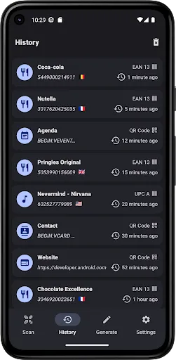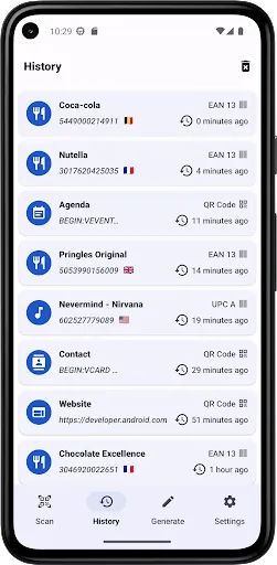 • Keep track of all your scanned barcodes with the history tool.
