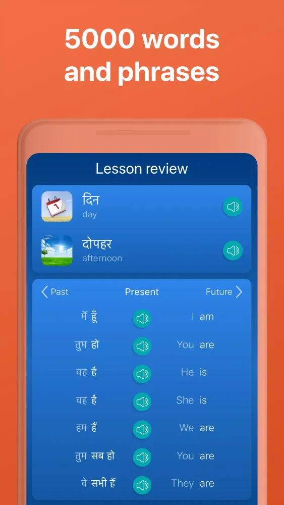 - Useful Phrases: Learn Hindi vocabulary through core words and phrases, organized into themed packs.