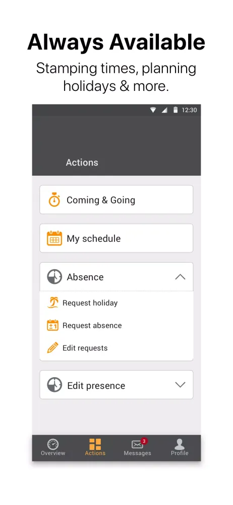 Streamlined Requests: Employees can quickly request holidays, overtime, and absences through a simple digital process. Supervisors can approve these requests with just a click, simplifying administrative tasks.