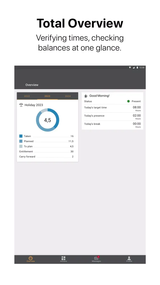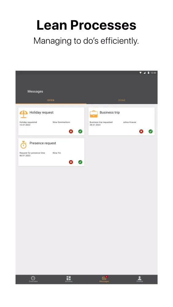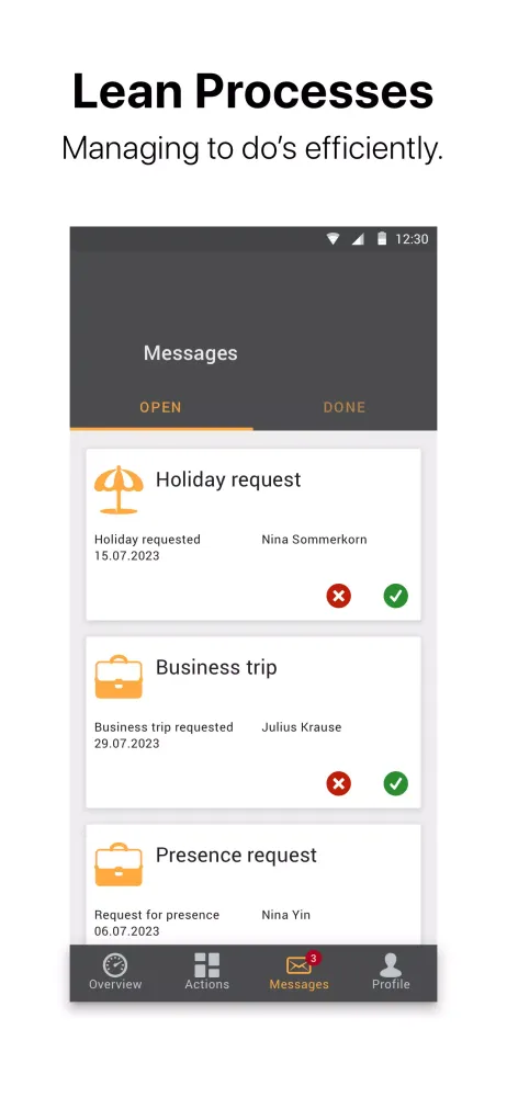 Proactive Notifications: Stay on top of important deadlines and compliance requirements. The app sends automatic notifications for missing sick notes or clock-out times, ensuring lean and efficient processes.