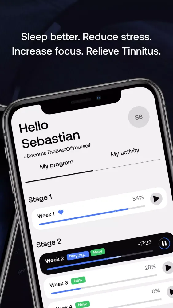 - Starting Program: Choose between a Well-Being or Tinnitus starting program.