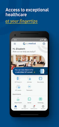 Current patients of Our Medical can use the app to join the queue for a telehealth consultation (where this service is available).