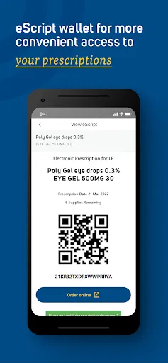 eScripts issued by your doctor will be stored in your eScript wallet. Show the eScript to the pharmacy to dispense on the spot, or order online.