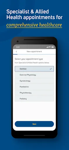 Appointments with allied health professionals, such as physios, or Specialists can be booked and managed via the app.