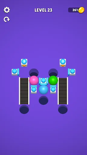 In every level, you're presented with a unique challenge: manoeuvre the balls into the right spots by cleverly using pushers. The goal? Sink each ball by creating the perfect sequence of moves. Whether it's aligning a tricky shot or figuring out the order of operations, Dunkle keeps you engaged and entertained.