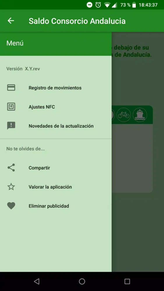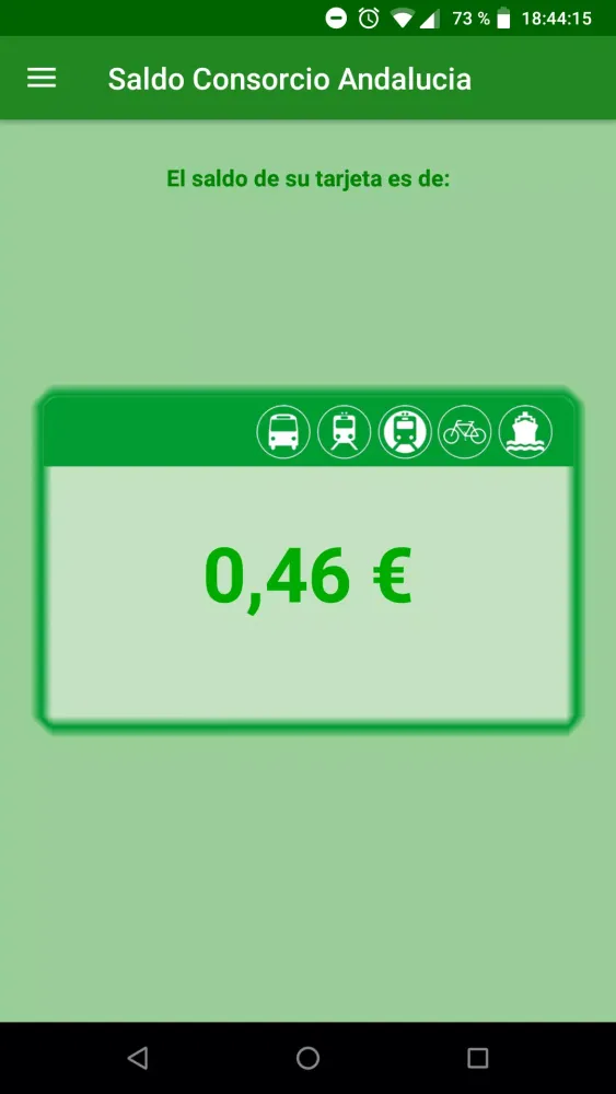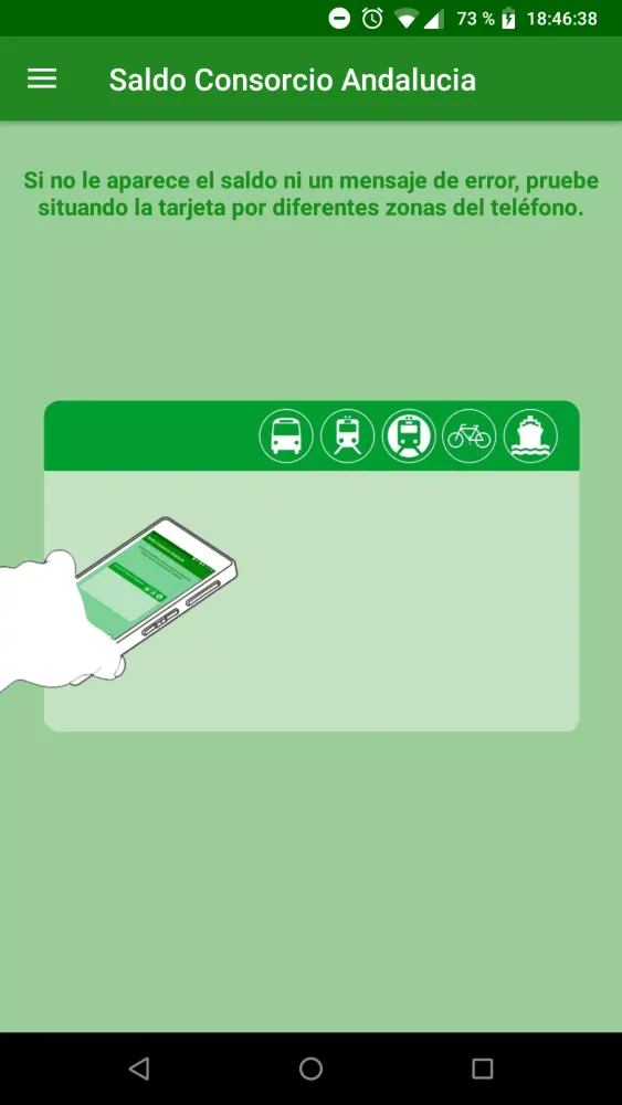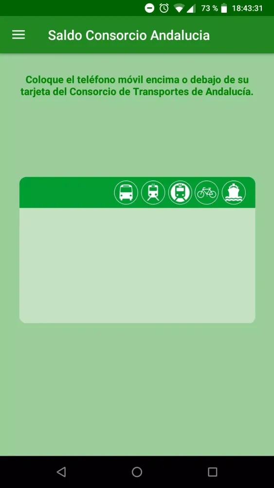 The "Saldo Consorcio Andalucía" application allows you to effortlessly check the balance on your Andalusian Metropolitan Transport Consortium card using Near Field Communication (NFC) technology directly from your mobile device.