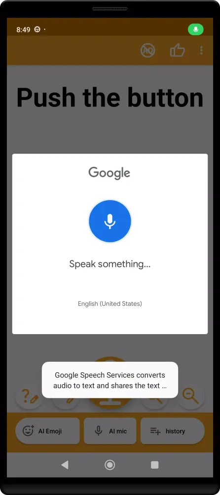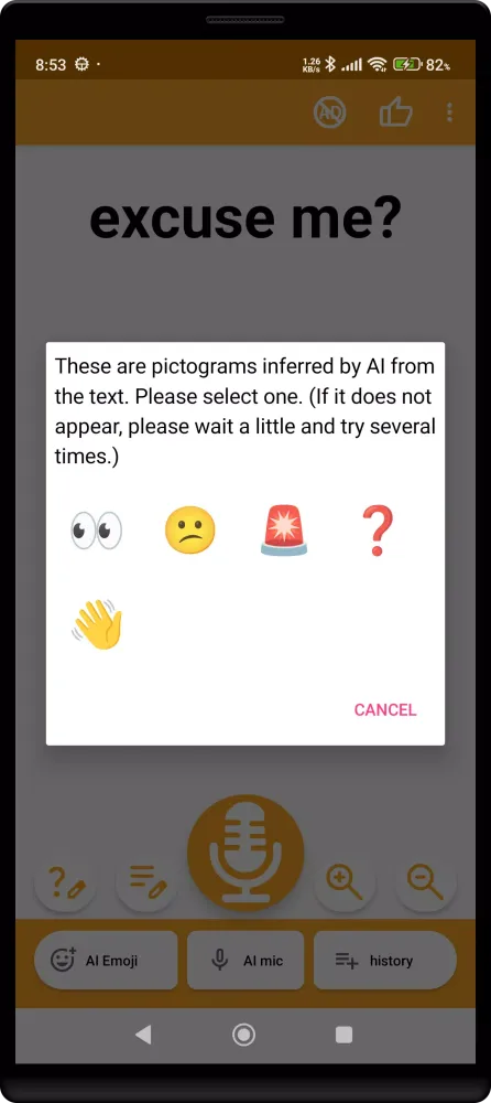 Simply press the microphone button to input spoken words, which are then displayed in large text on the screen. This feature enables you to convey messages without needing to raise your voice, making it perfect for quiet environments.