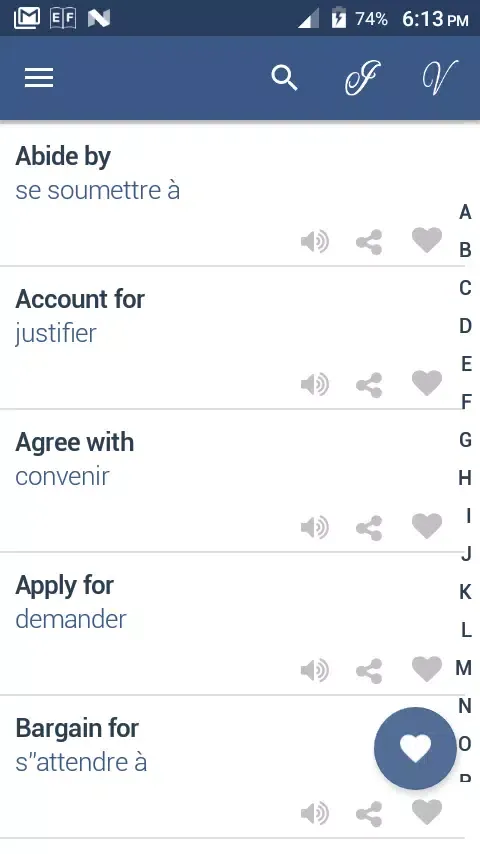 Verb French is an essential tool designed for learners who wish to master English verbs and their corresponding French translations. The application offers a comprehensive collection of English verbs paired with their French meanings, phrases, idioms, and prepositions. This makes it a versatile resource for anyone looking to expand their vocabulary and enhance their understanding of both languages.