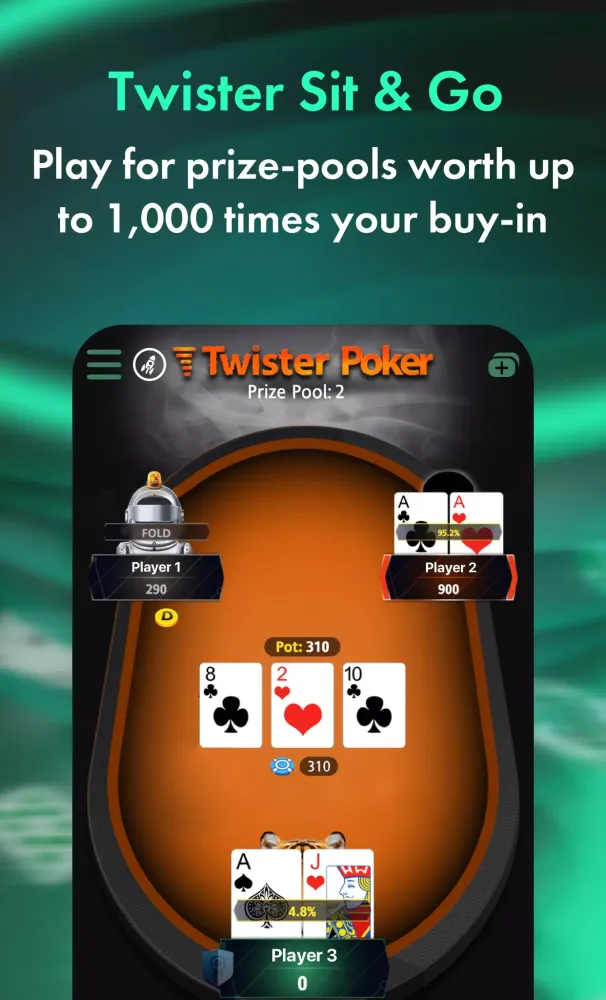 For those who crave speed, Speed Poker provides lightning-fast gameplay, eliminating the need to wait for opponents to act. Meanwhile, Twister Sit & Gos deliver adrenaline-pumping tournaments with prize pools worth up to 1,000 times your buy-in. Love the idea of going all-in? Try Wild Twister Sit & Gos or the thrilling Age of the Gods Twister, which includes a chance to win a mystery jackpot!