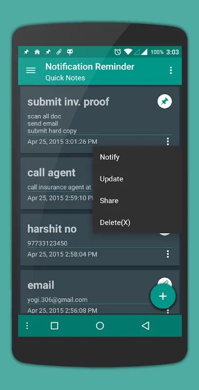 3. Update, delete, renotify & share notes.