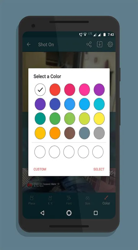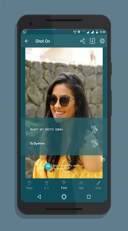 ✌ Choose shot on watermark from the list (App provides many inbuilt Shot on watermarks with stylist fonts and brand names and logos)
