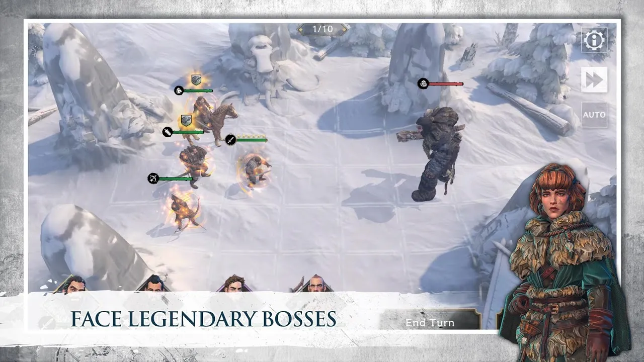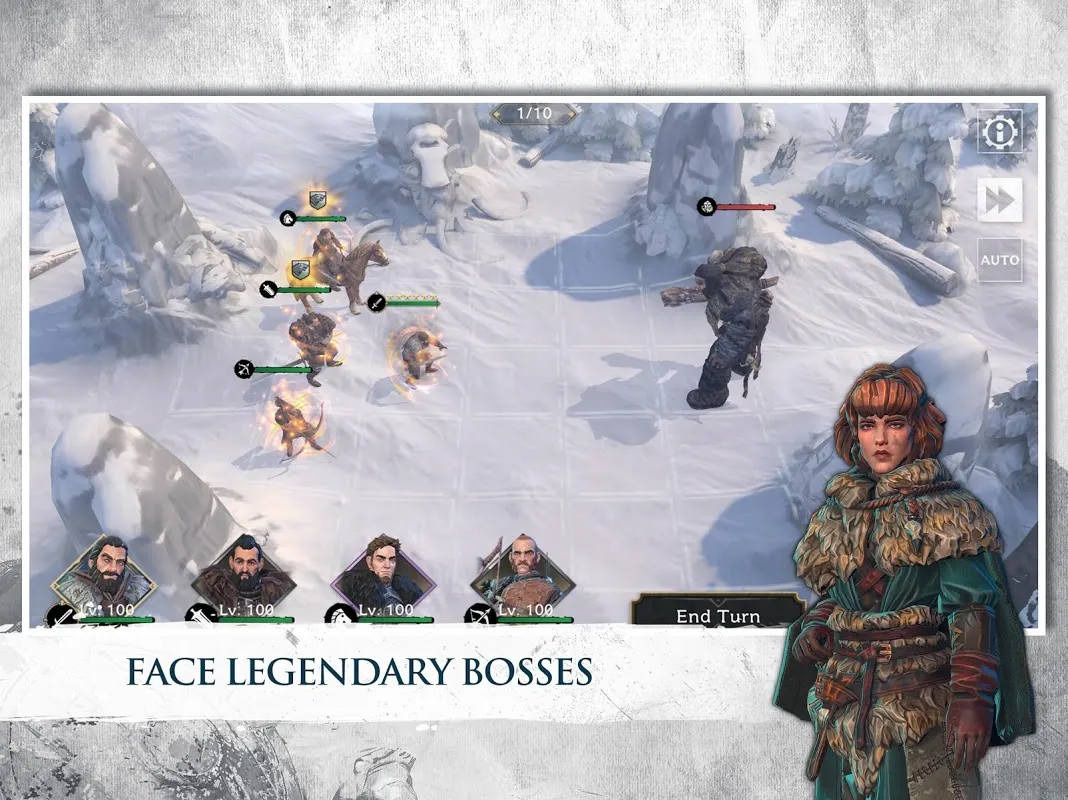 Giants, wildlings, wolves, and even worse are coming for you. To push them back, you will need to make the most out of your heroes and units’ unique stats and abilities. Different weapon types and unit archetypes will allow you to enjoy deep tactical, turn-based battles. No time for battle? You can always speed up by playing in auto-mode.