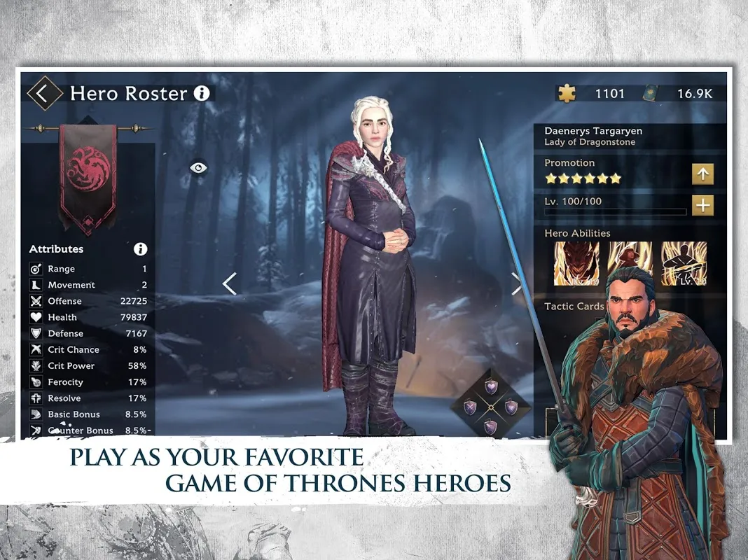Play as various versions of fan-favorite characters such as Jon Snow, Daenerys Targaryen, Melisandre, Jaime Lannister, or as a brand-new hero straight from the unique storyline. Upgrade them, train them, and use their unique abilities in battle or the PvP arena!
