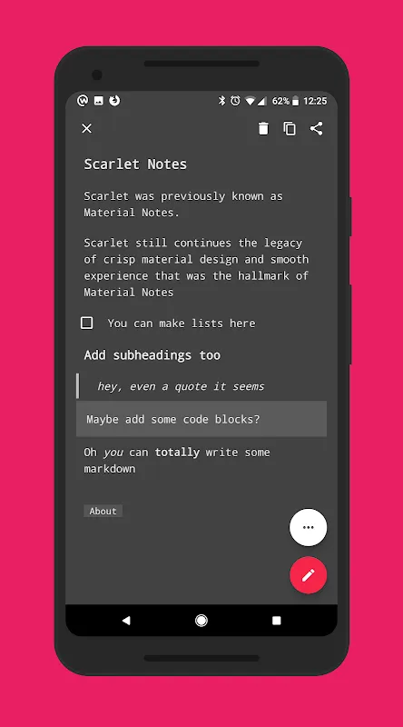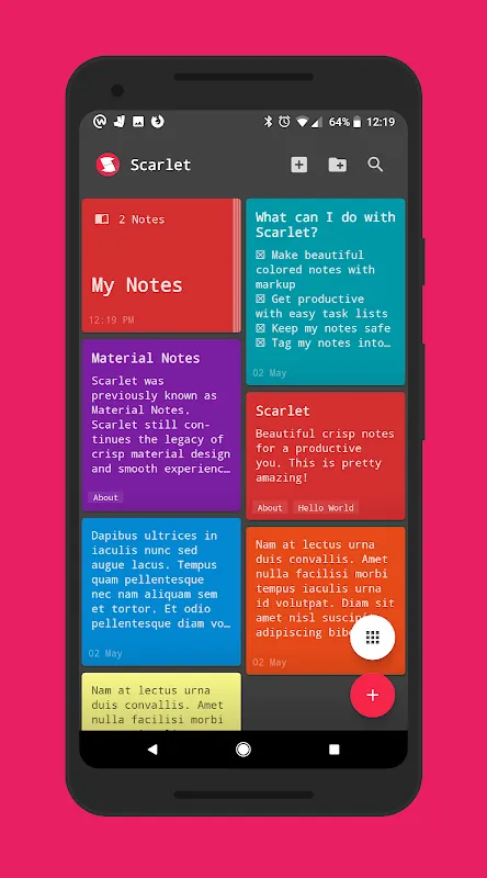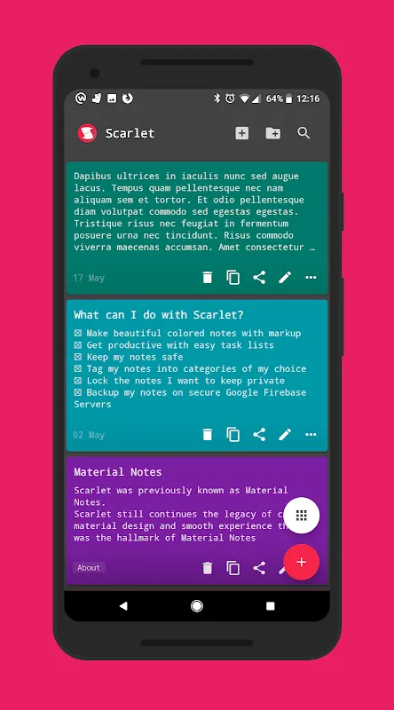 Scarlet Pro (previously Material Notes Pro) offers a simple no hassle interface for adding notes in a beautiful material design.