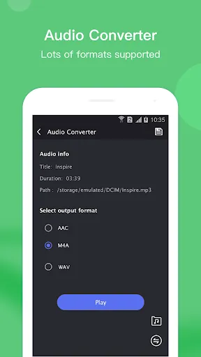 - Convert Audio: Change one music format to another, such as: AAC to MP3, M4A to MP3, MP3 to WAV and so on.