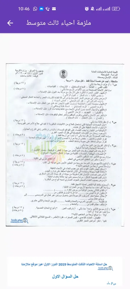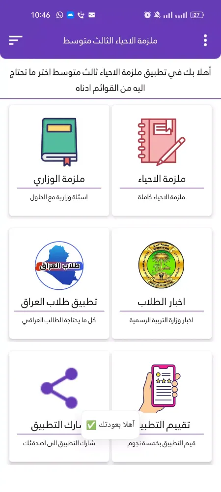 Description of the Application "ملزمة احياء الثالث متوسط"