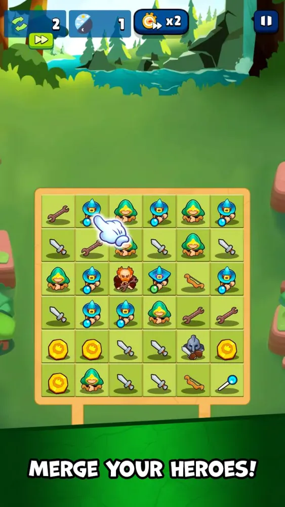 The tranquil Heroes Forest has been besieged by fearsome monsters! As a valiant and mighty commander, it's your duty to protect the peace of the forest. Merge your heroes to create powerful warriors and set up your favorite lineup to defend against the relentless onslaught.