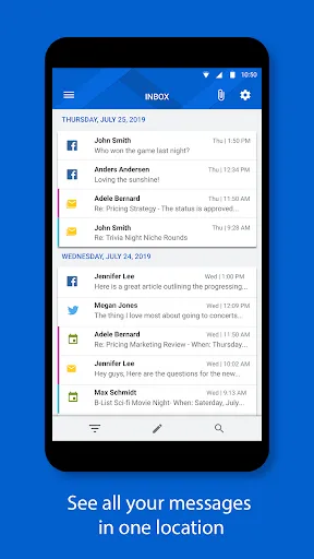 Inbox consolidates all your emails and calendar events in one unified app, and Inbox seamlessly integrates social notifications from Facebook, WeChat, Twitter, LinkedIn, WhatsApp, and more.