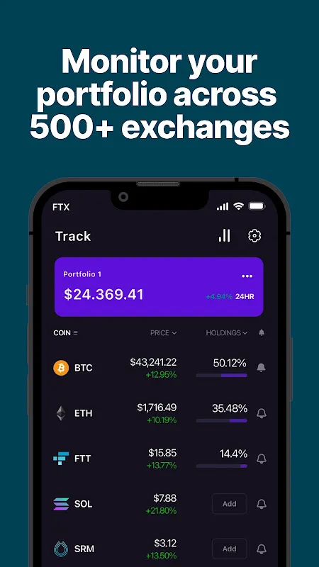 • Monitor your crypto portfolio across 500+ crypto exchanges