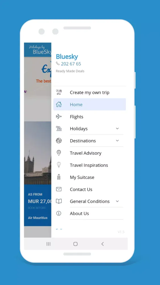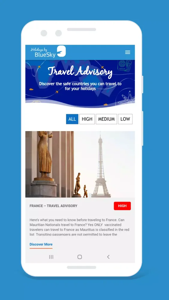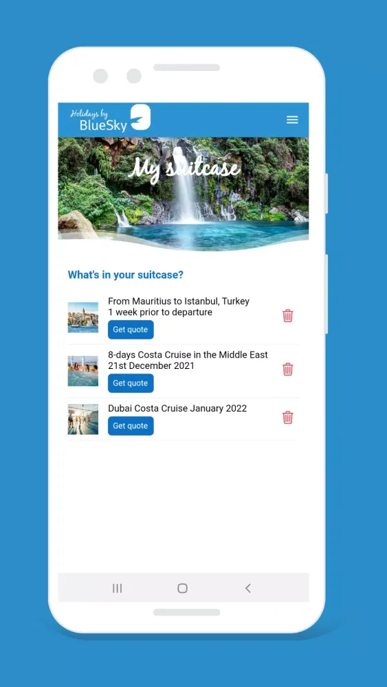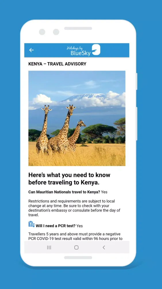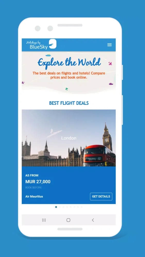 As the first travel app in Mauritius, Holidays by BlueSky is revolutionizing the way you plan and book your holidays. Say goodbye to the complexities of traditional travel planning and embrace the convenience and simplicity of our platform. Ready to embark on your next adventure? Let us take care of the details so you can focus on enjoying your well-deserved break.