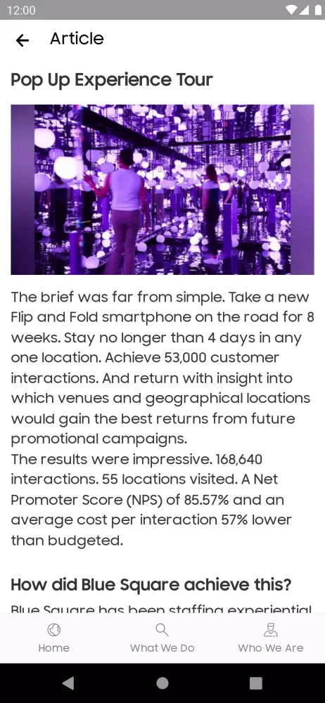 Beyond staying informed about internal developments, TeamSquare opens the door to exciting external opportunities. Users can celebrate Blue Square's numerous favourite awards, recognizing their hard-earned recognition in the industry. The app also highlights the Pop Up Experience Tour, providing a glimpse into immersive brand activations that bring products to life in unique ways. Furthermore, you'll discover epic product launches, getting exclusive access to the latest innovations from some of the world's most beloved brands.