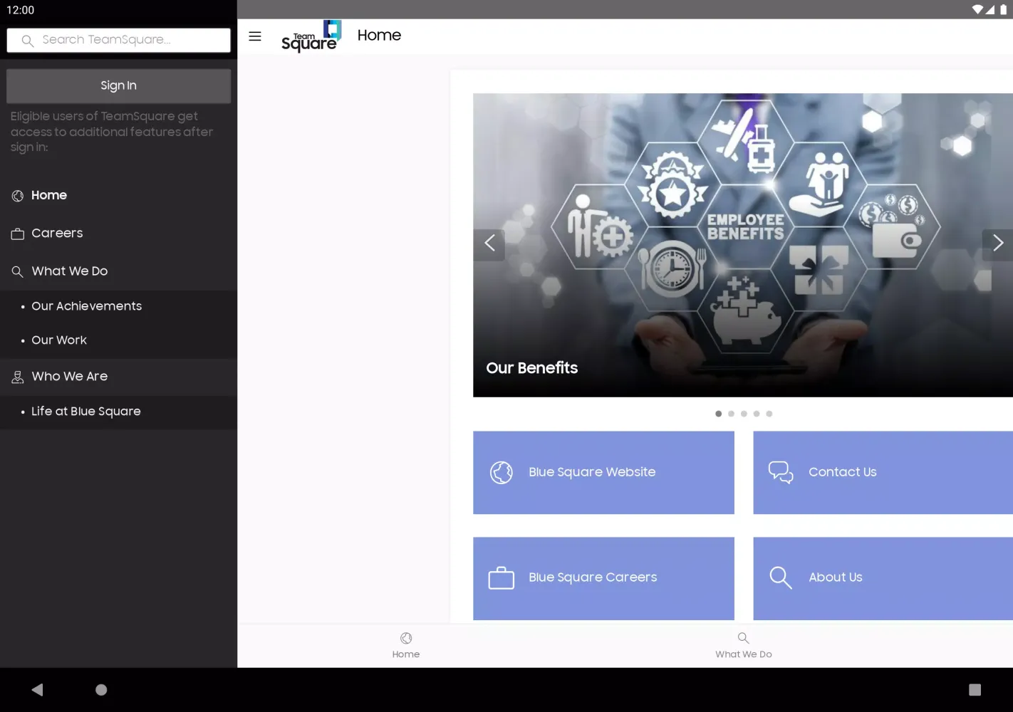 Whether you're an existing member of the Blue Square family or someone interested in joining their journey, TeamSquare bridges the gap between people, ideas, and possibilities. It's not just an app; it's a community hub where collaboration thrives and growth flourishes. Join us today and become part of something extraordinary!