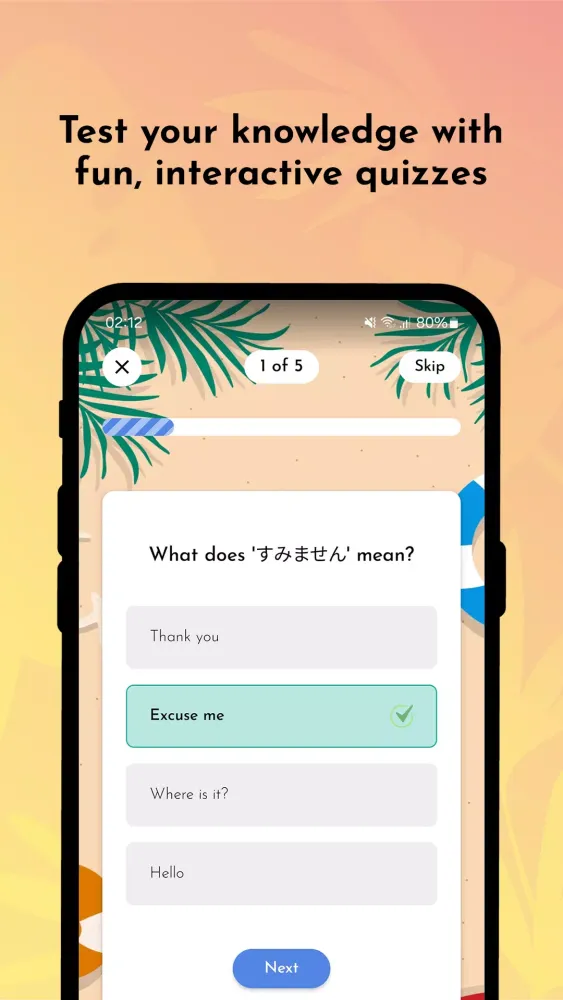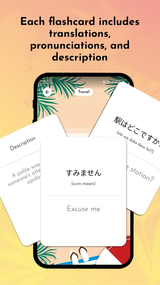 Enhance your learning experience with flashcards categorized into themes like travel, idioms, food, greetings, and more. Tailor your vocabulary practice to suit your specific interests and needs, making your language acquisition both practical and enjoyable. -