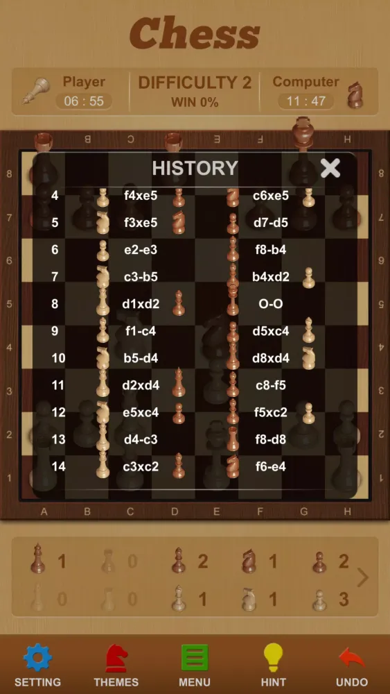 Experience the classic game of chess with our user-friendly and engaging application! Whether you're a beginner or a seasoned chess master, our game offers a powerful engine that caters to all skill levels. Enjoy the thrill of playing against friends or testing your strategic prowess against the computer's five different skill levels.