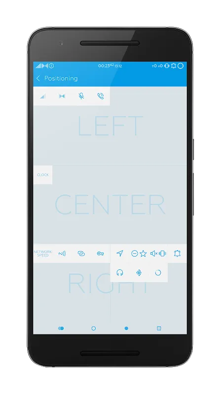 • Change position of data, Wi-FI, battery, clock, carrier label, alarm, bluetooth, sound & location indicators left, center, right