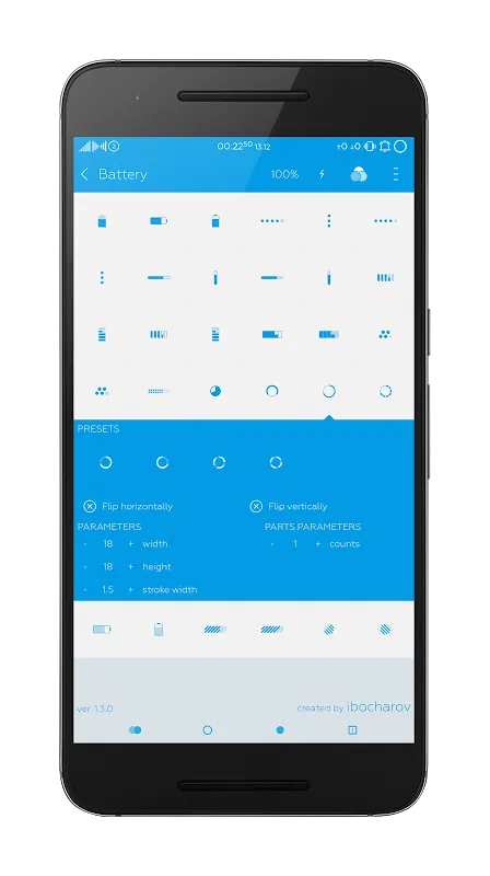• Change battery tinting color separately per each level (for example: 0 - 5% -> RED, 0 - 100% during charging -> GREEN)